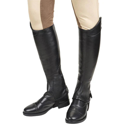The perfect fit, enhanced by the elastic back panel and Spanish top, of this half chap gives the wearer a classy, sleek and ultra-modern look. The incredibly soft full grain leather of the Lettia London half chap is perfect for the rider who spends quality time in the saddle. The London half chap features a strong YKK back zipper with a “ Twist “ for the long and lean look.