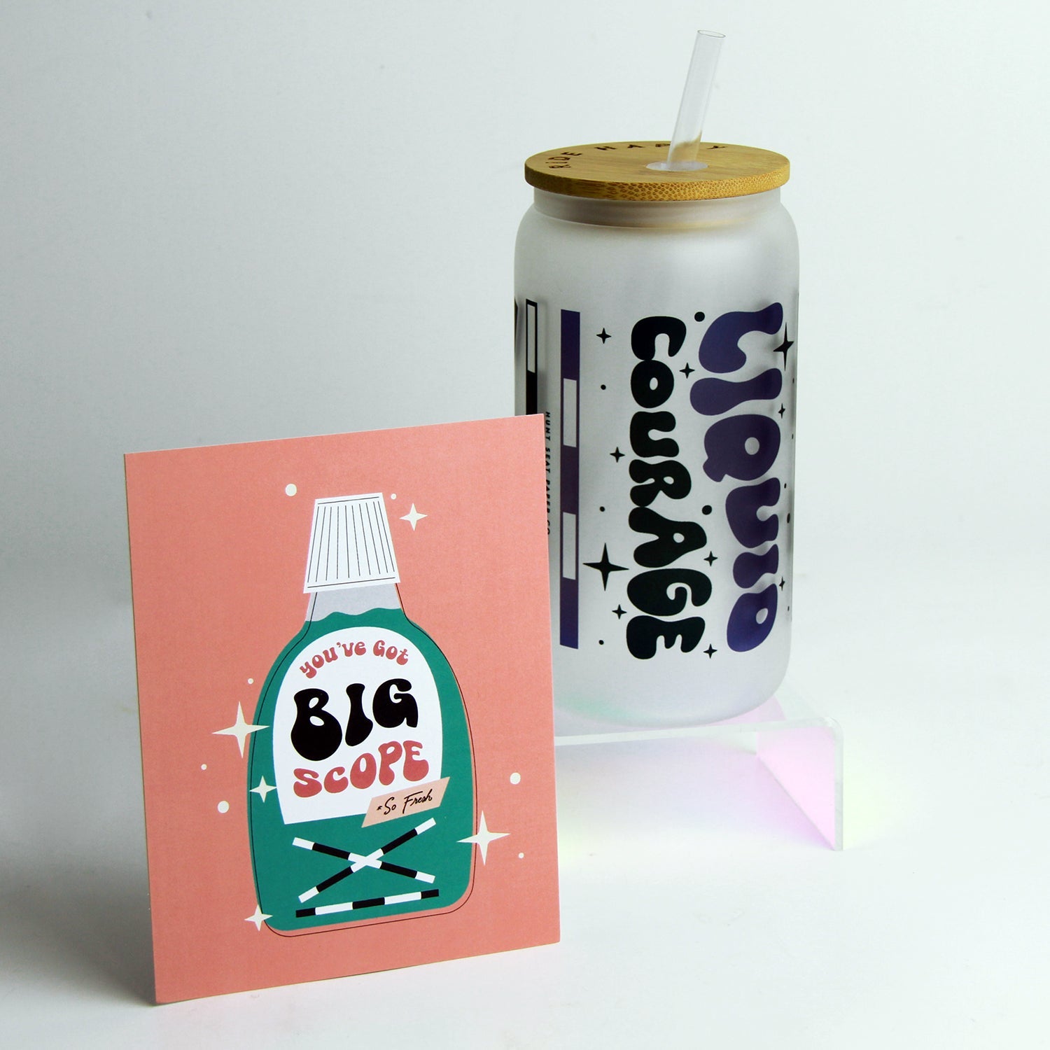 Liquid Courage Glass Tumbler with Bamboo Lid and Straw