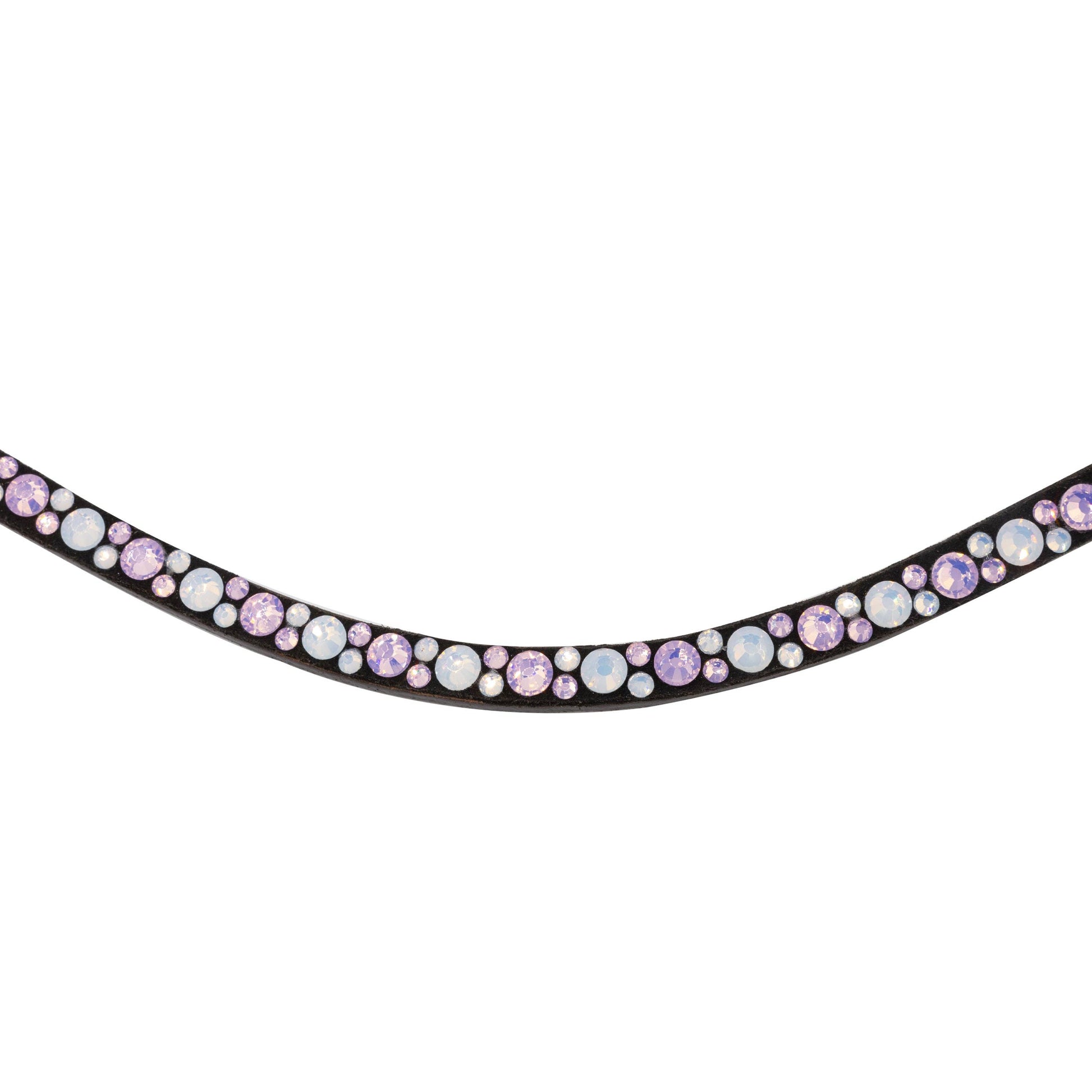 Pink and white bubbly crystals adorn this snap browband. Enhancing the look of your horse's bridle with some bling!
