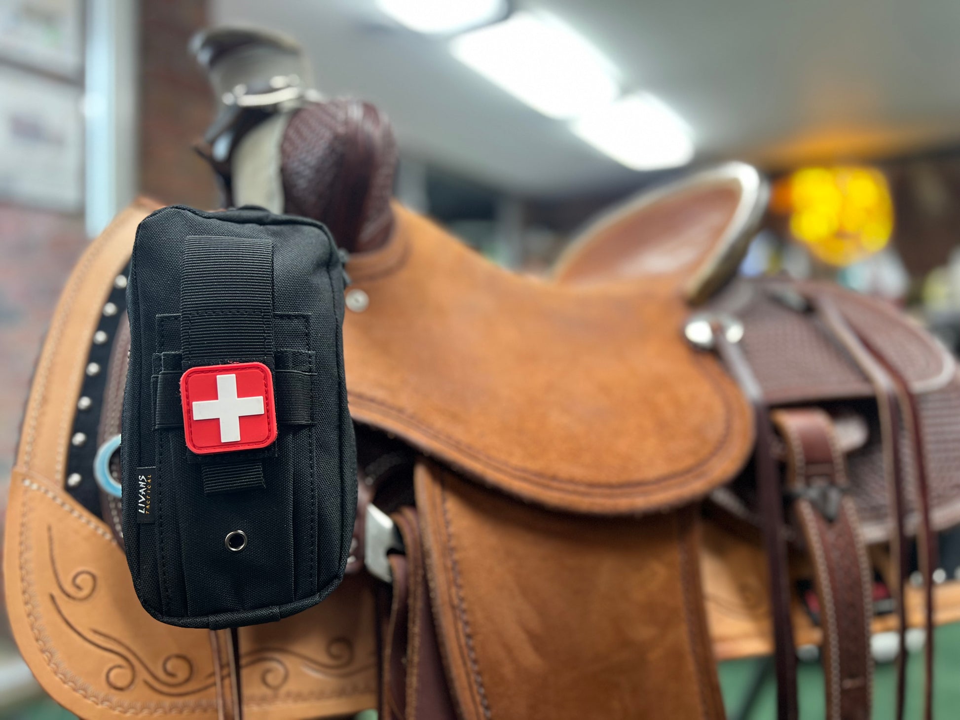 Rider first aid kit designed for easy carry on saddle, vehicle or trailer. The kit includes all the basics for the most common injuries. Be prepared when the inevitable mishap occurs.