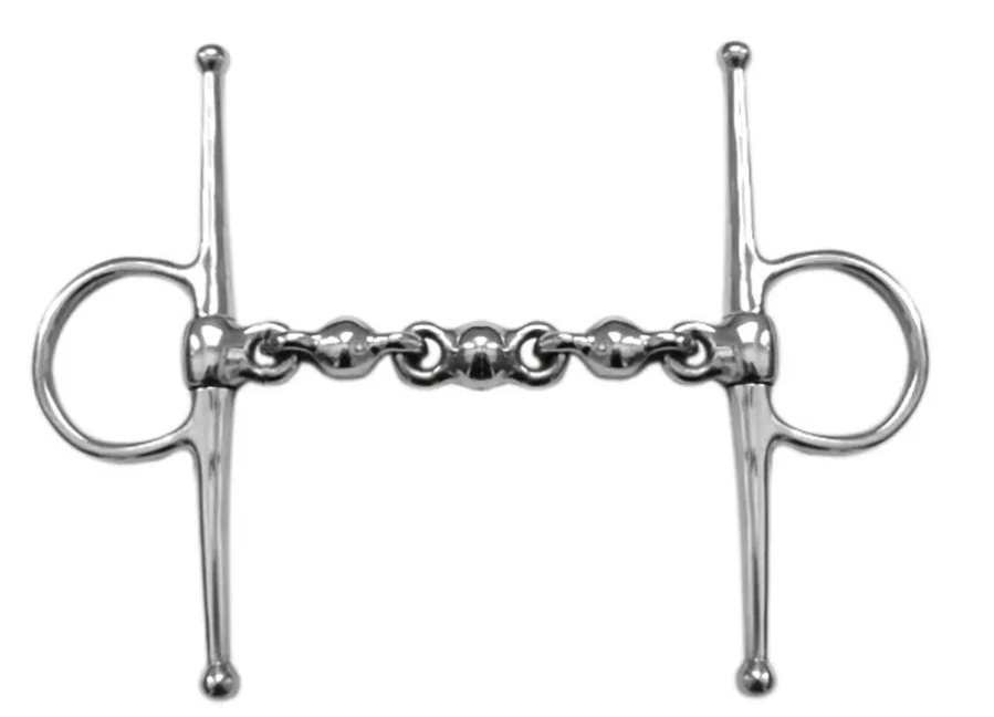 This bit has full cheeks to help with steering and a mouthpiece made up of many different links to make it harder for the horse to pull or lean against it. Mouthpiece thickness: 18mm. Cheek height: 165mm. Stainless steel is the most common material for bits. Durable, easy to clean, tasteless and does not rust.