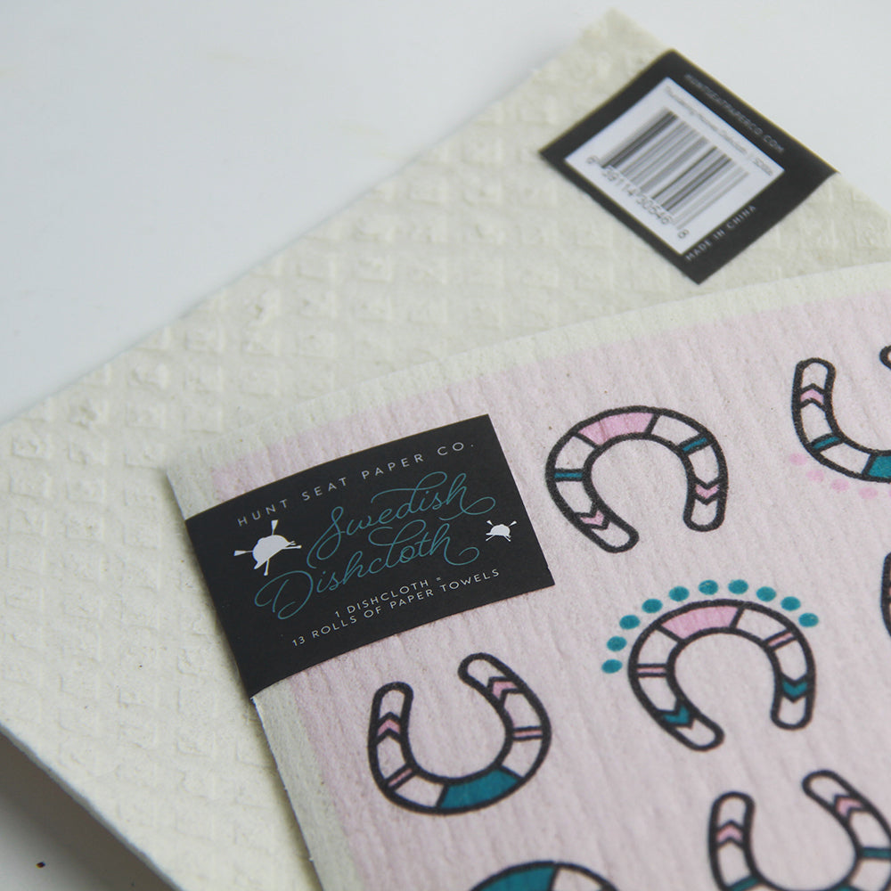 Matches with our Thundering Hooves Gift Wrap, Notepads, Notecard Sets Pony Pins, Swedish Dishcloths, Tea Towels and Reusable Sponges.