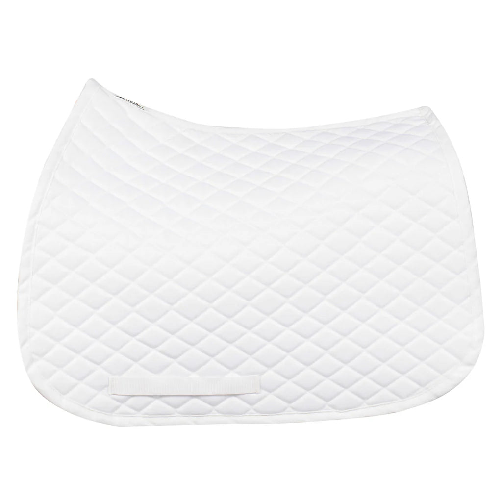 TuffRider's basic all-purpose quilted cotton saddle pads are a great buy, with good quality at a low price. English square saddle pads are made of cotton with cotton flannel support and channel quilting. Choose from so many colors, including black, lilac, white, pink, royal blue, mist green, and red saddle pads that fit under most close contact and all purpose saddles. These quilted AP pads are perfect for everyday use so stock up on a few of these affordable lesson and schooling pads in your favorite colors.