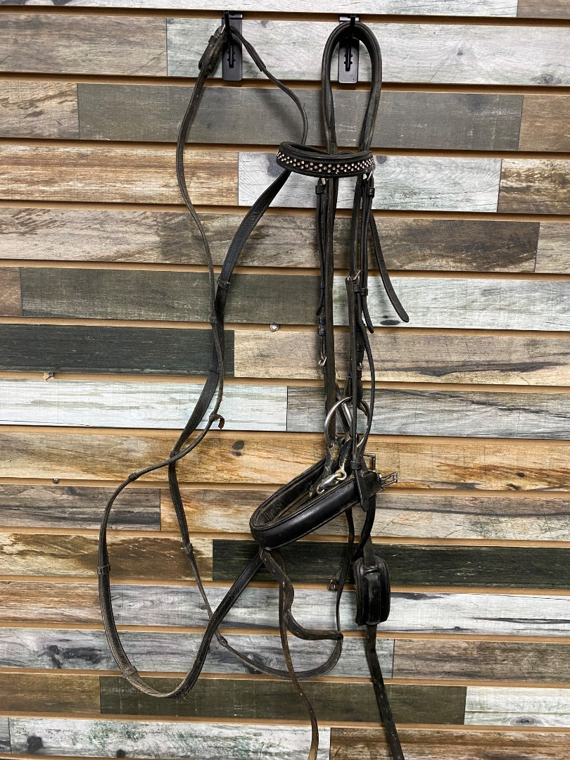 Black Dressage Bridle w/ Bling Browband and O-ring Snaffle