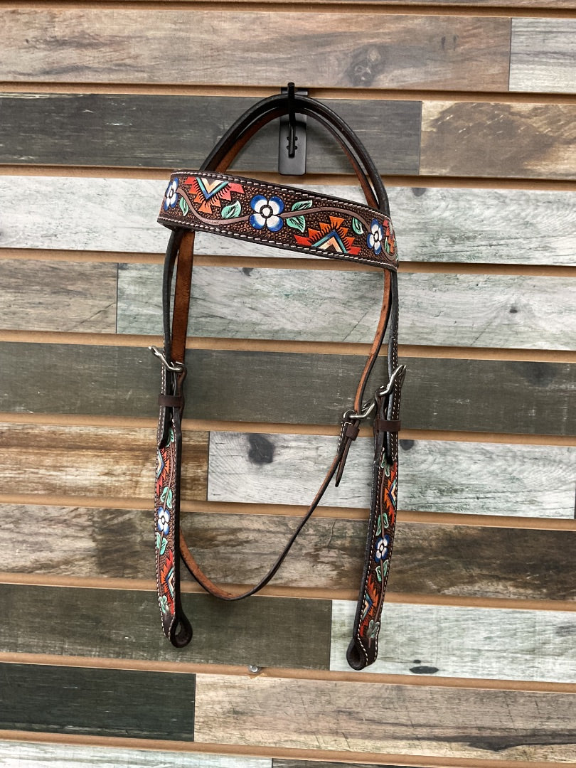 USED Hilason Floral Tooled Headstall Horse Floral Tooled