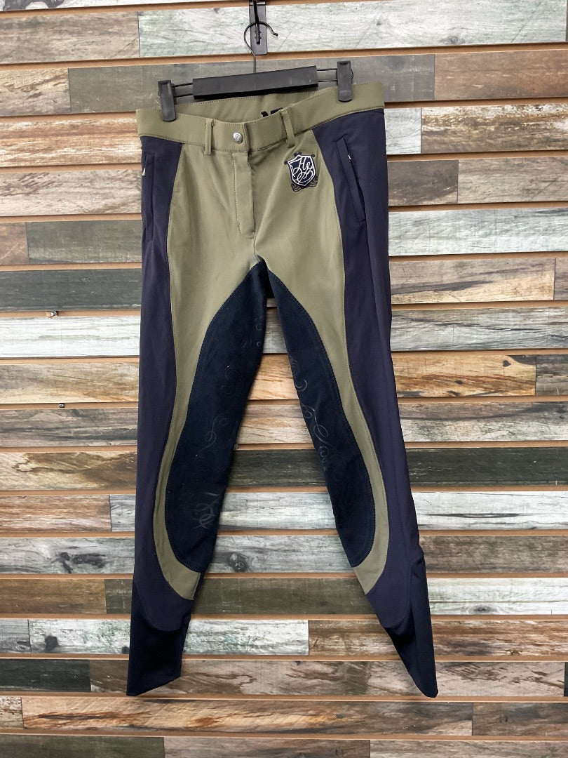 USED Horze Full Seat Breeches 28 Olive/Navy