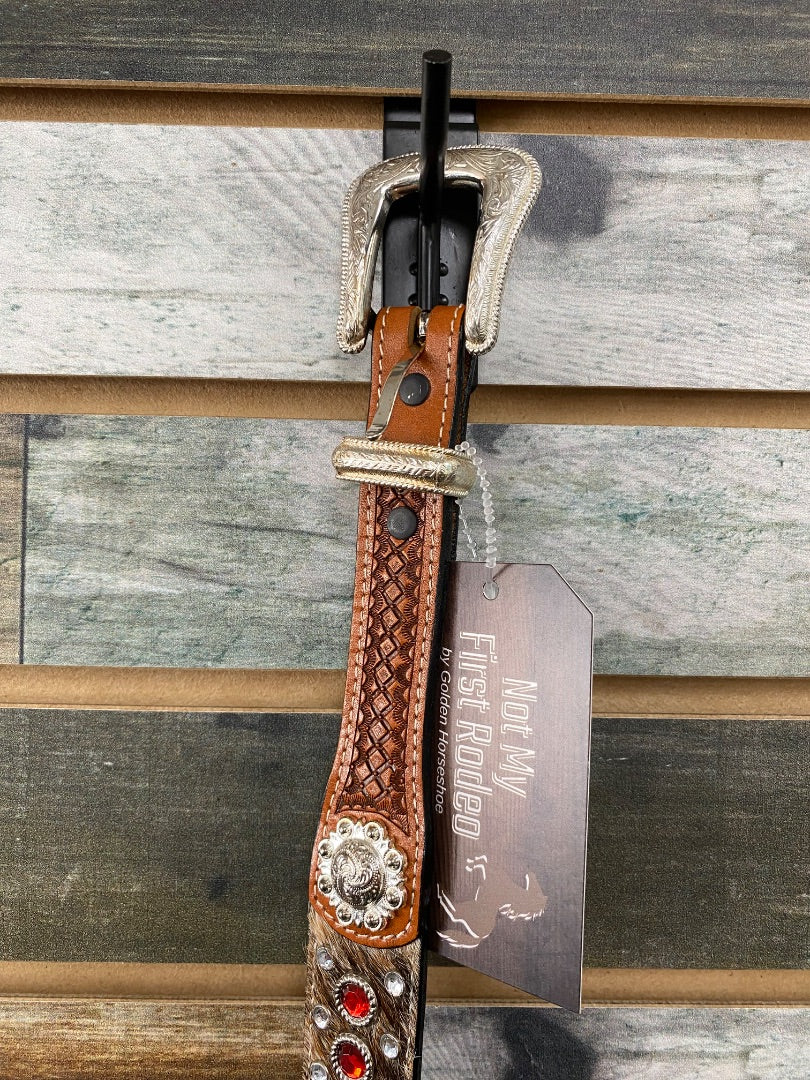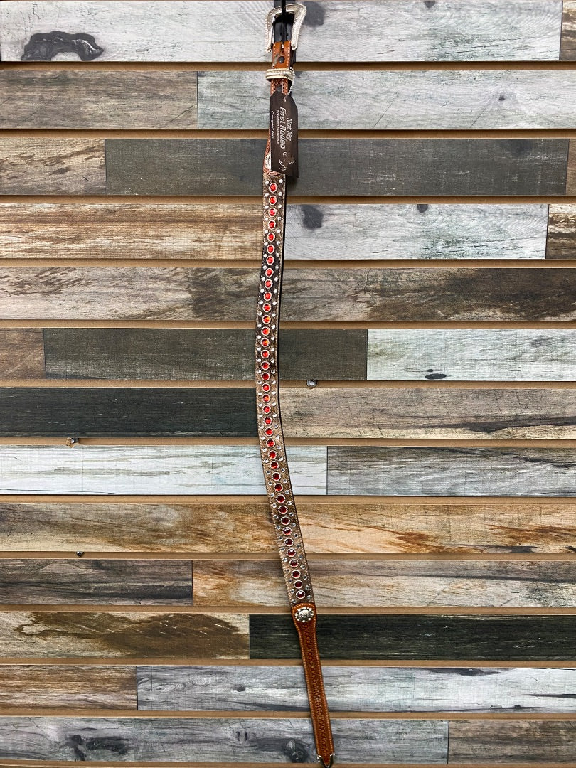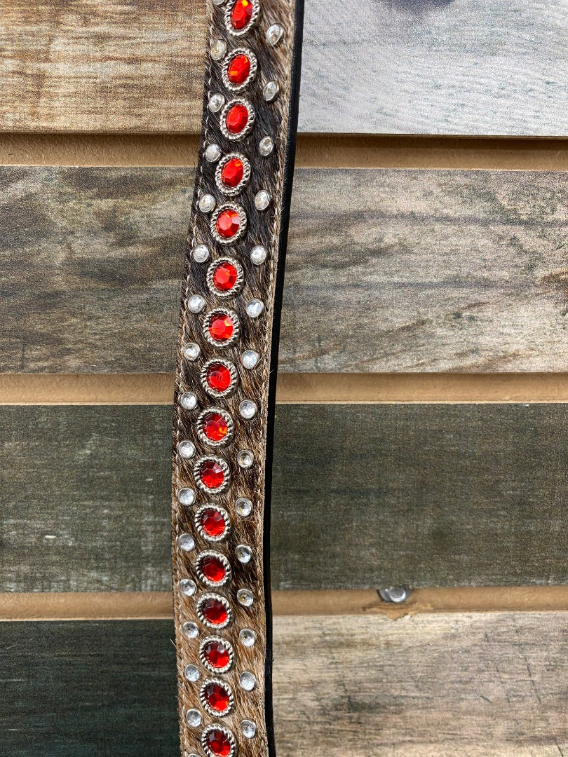 Used Ladies 32" Cowhide Belt with Red Gems With Silver Buckle and End 3D