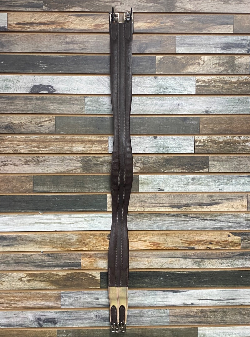 48" Dark Brown Leather One End Elastic Shaped English Girth