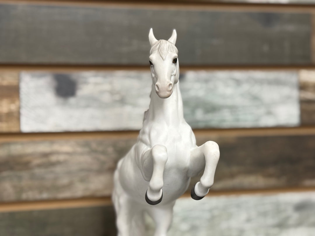 Subtle shading is expertly applied to define the horse’s musculature and contours, creating depth and a lifelike quality while maintaining a serene, polished finish. The poised stance and balanced proportions reflect both athleticism and grace, true to the figurine’s evocative name.