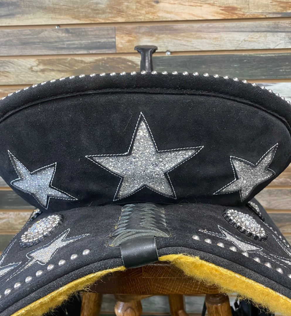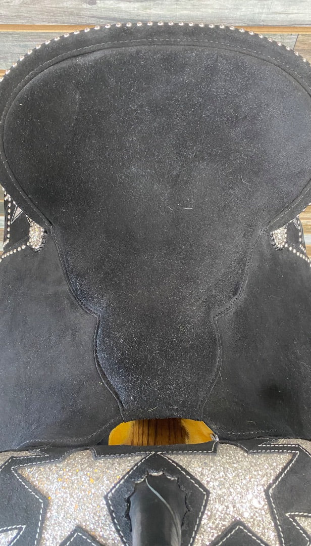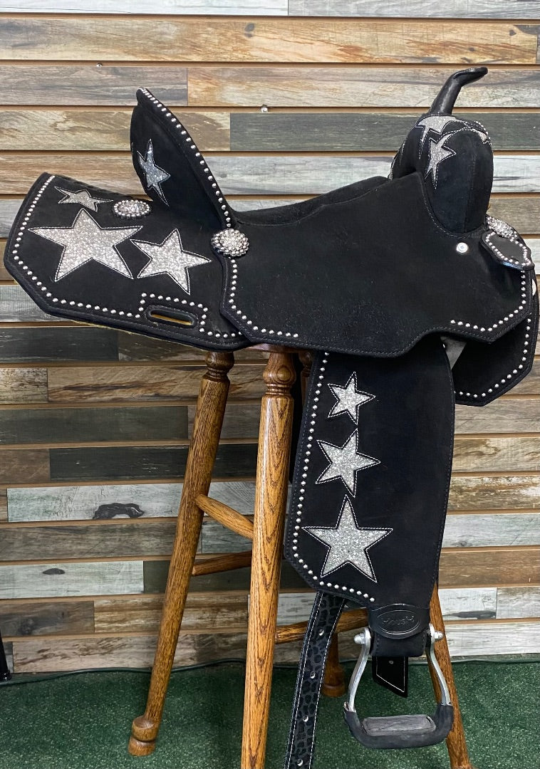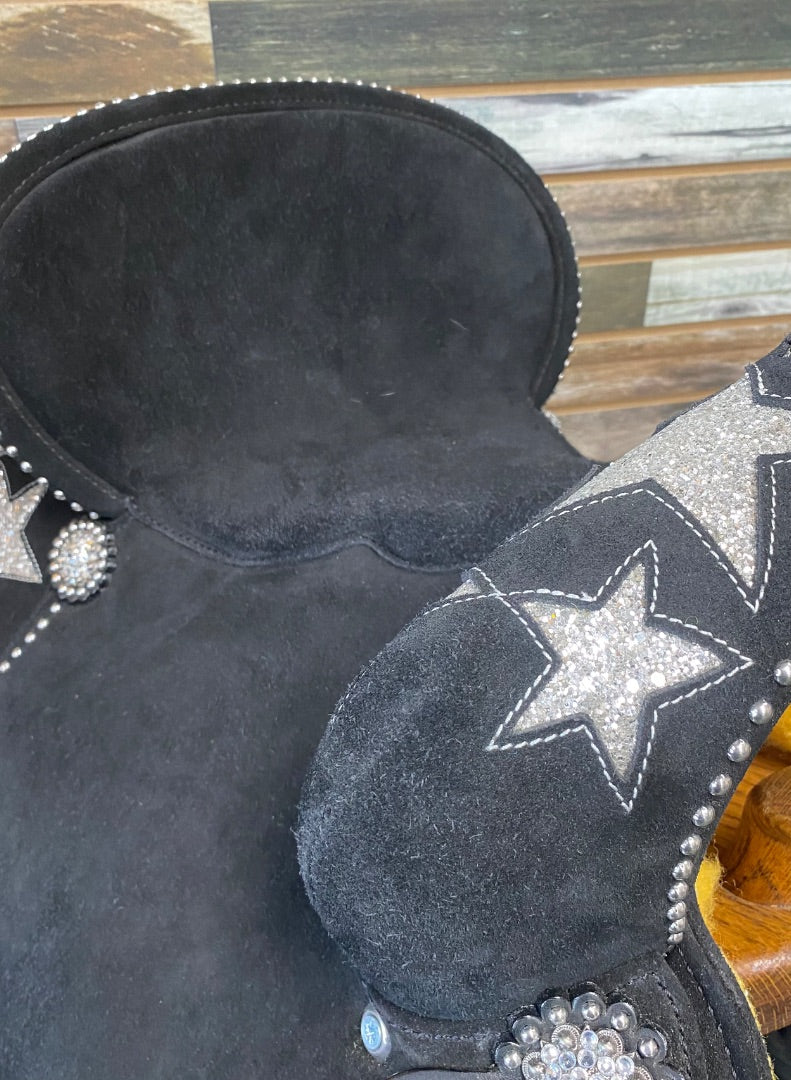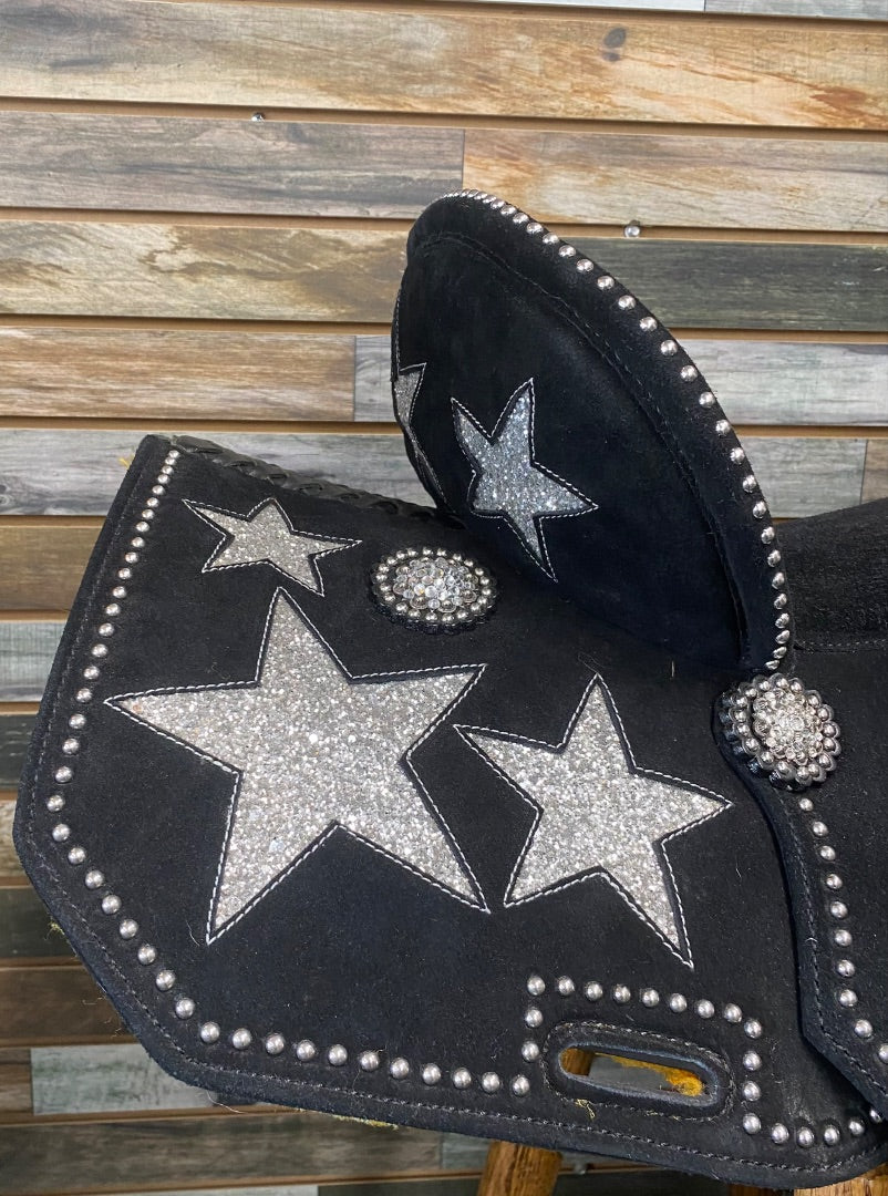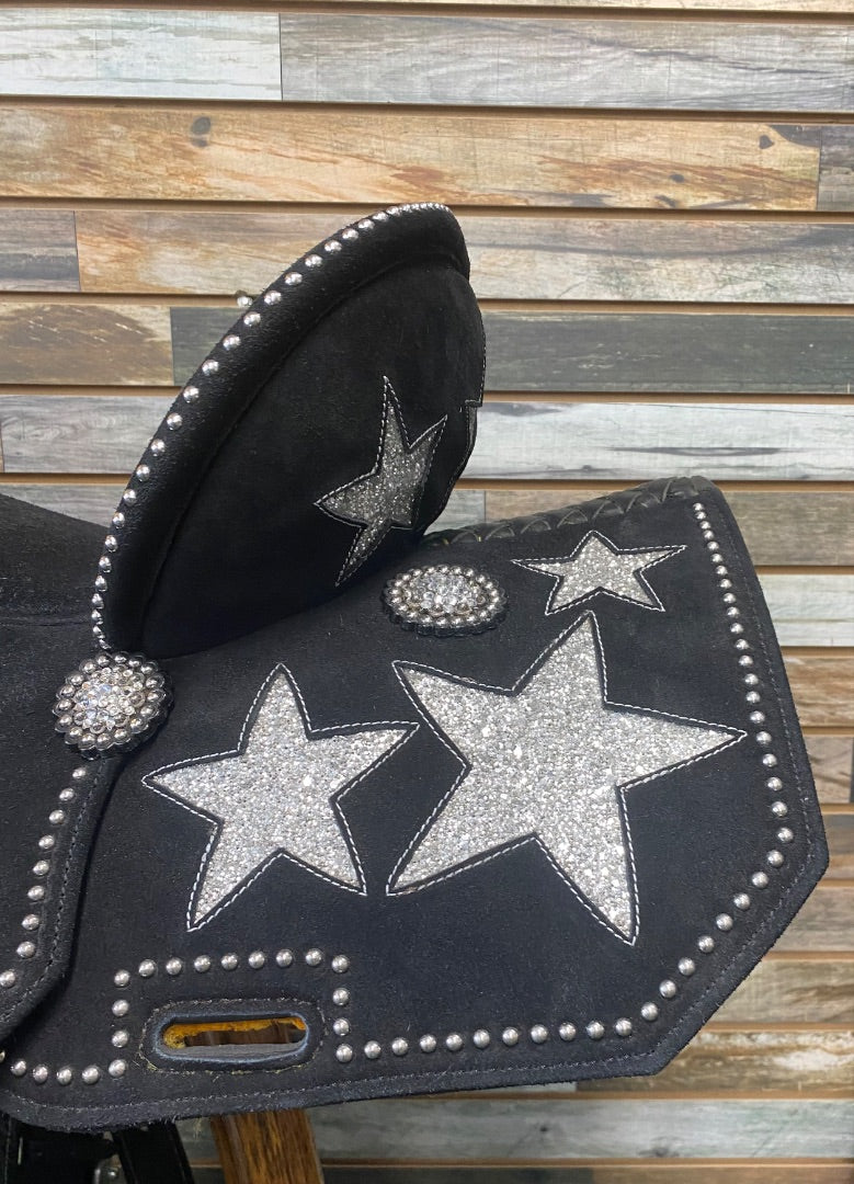 15" MOUSM Black W/ Silver Glitter Stars Barrel Saddle