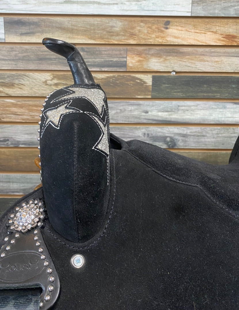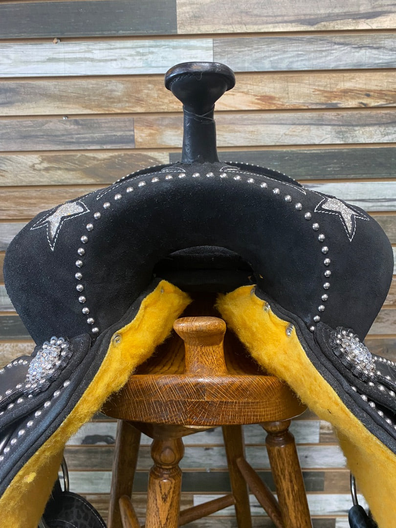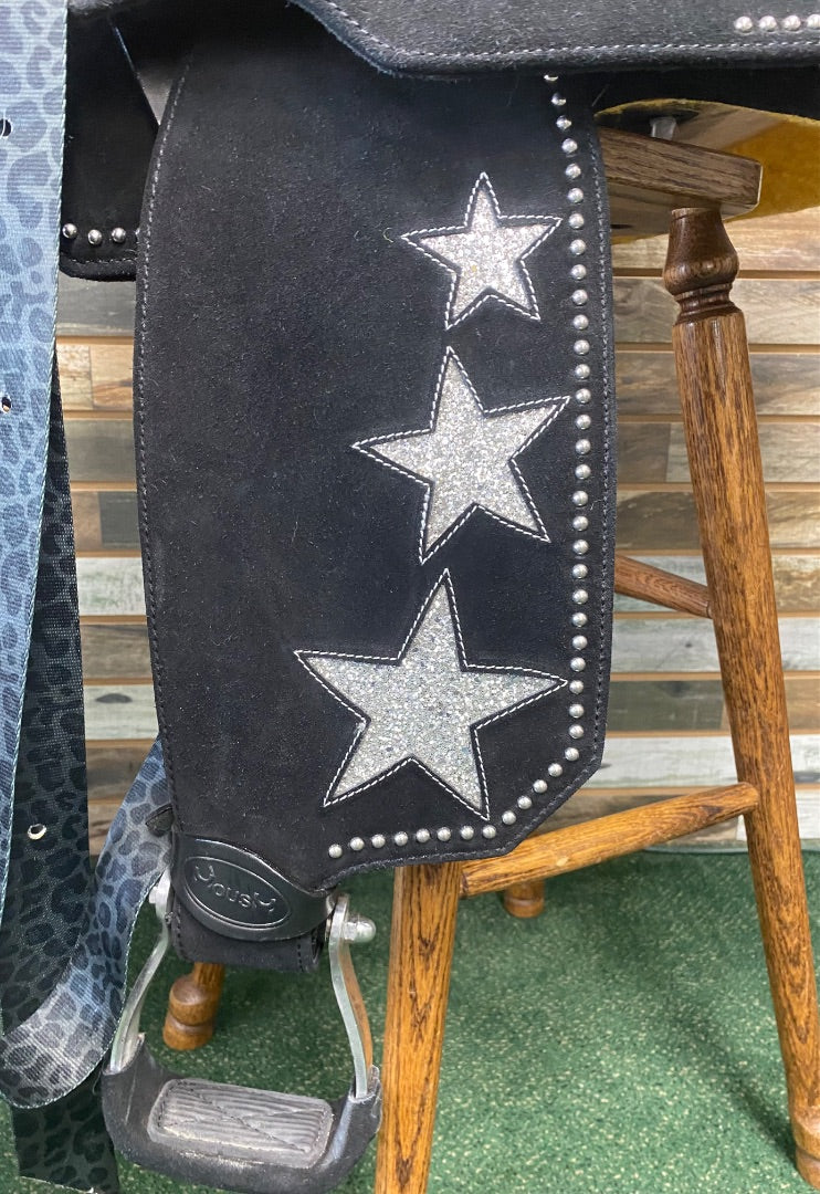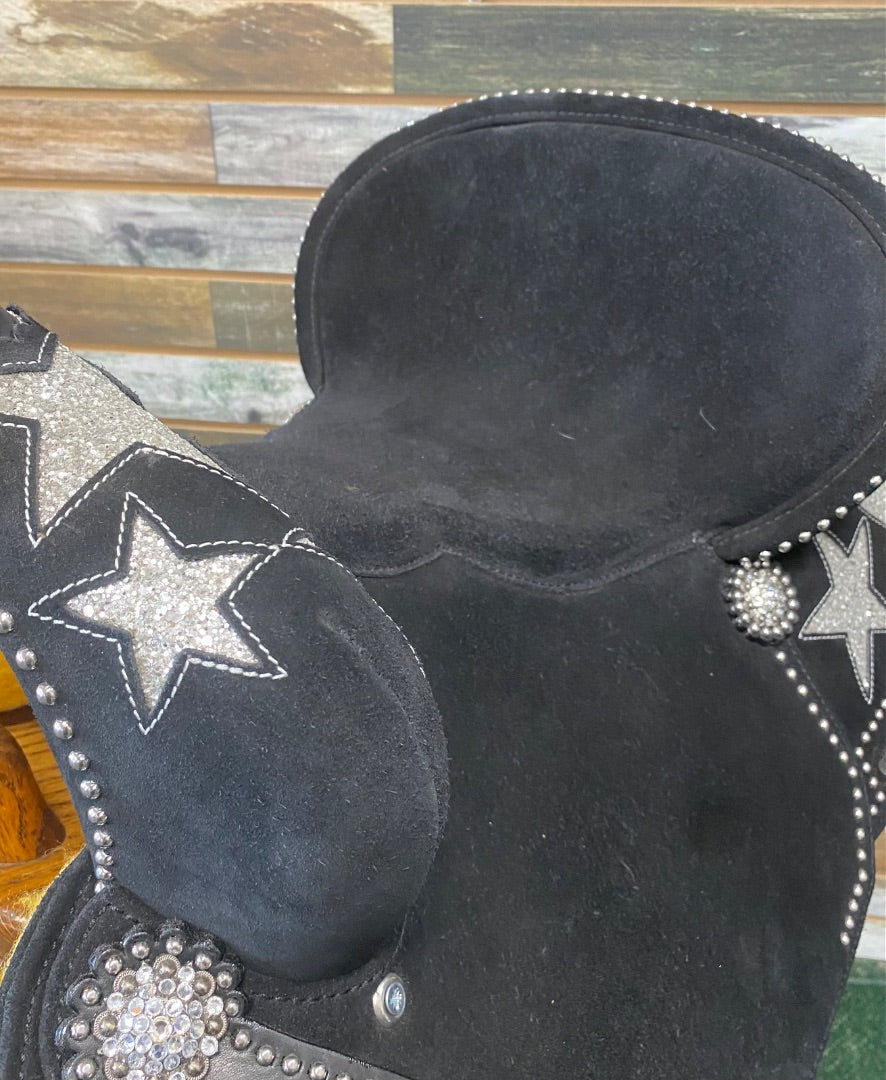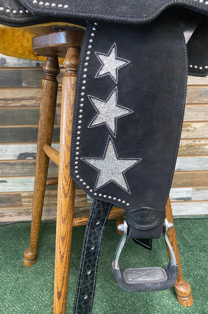 15" MOUSM Black W/ Silver Glitter Stars Barrel Saddle