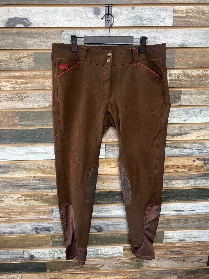 USED Piper by SmartPak Ladies English Breeches w/ Knee Patches 34L Brown