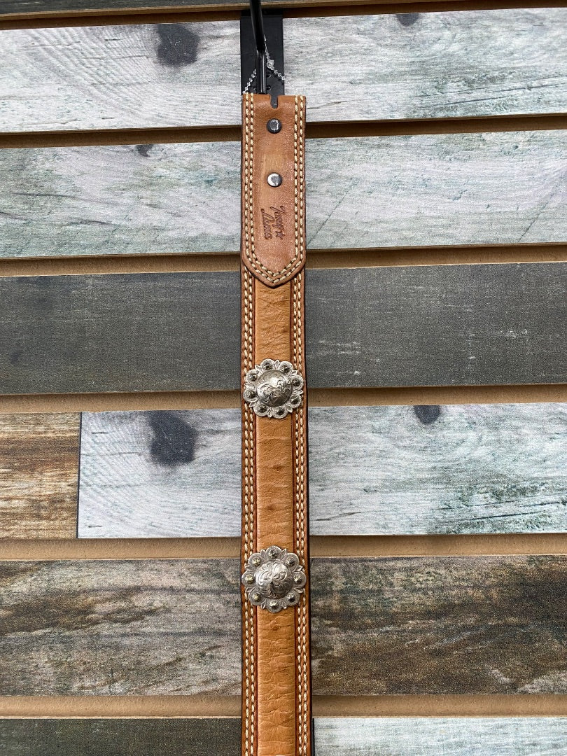 USED Tony Lama Ostrich With Silver Conchos Ladies Belt 30“ Light Oil Ostrich