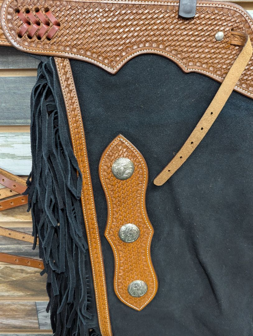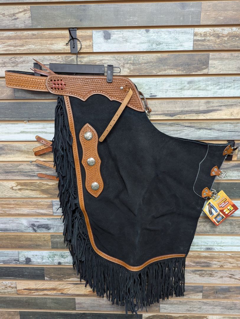USED Tough1 Ladies Western Chaps XL Black/Medium Oil