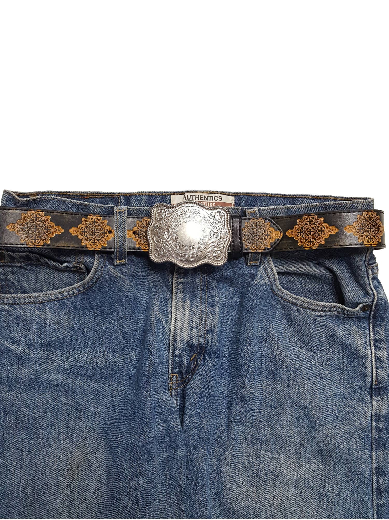 The final photo shows this buckle paired with a tooled 1.5" belt.
