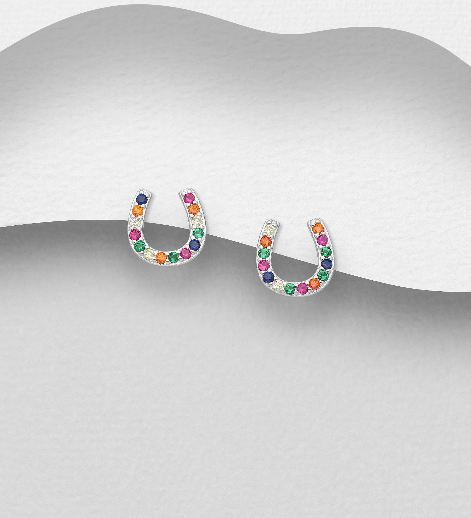 Bring a touch of luck and dazzling color to your look with these charming Sterling Silver Horseshoe Push-Back Earrings.