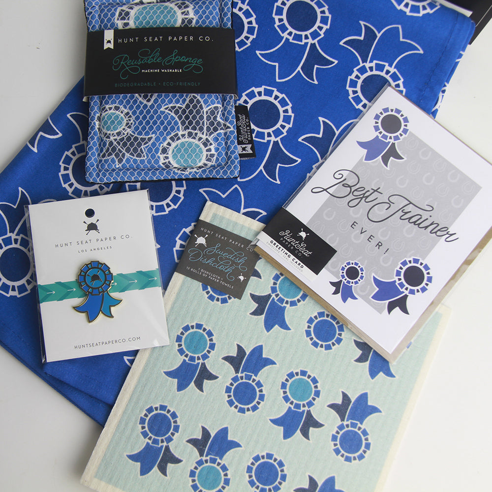 100% cotton Tea Towels. Horse Show Blue Ribbons...This Tea Towel is VIBRANT! Matches with our Winner Pony Pins, Swedish Dishcloths, Tea Towels and Reusable Sponges.